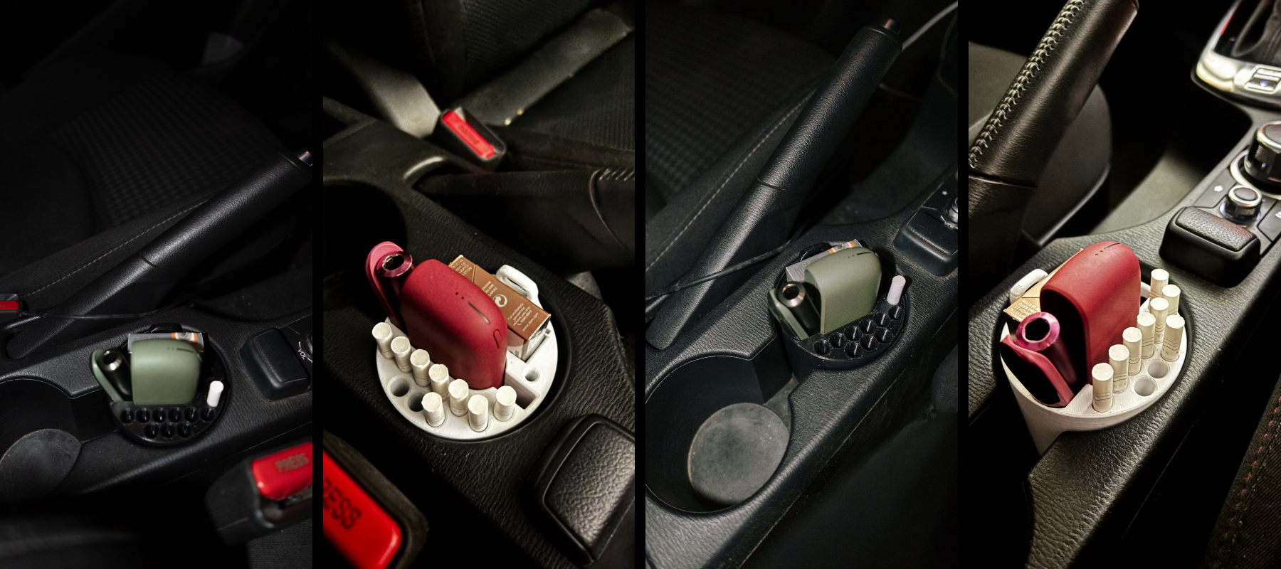 iQUP™ is an innovative, all-in-one car accessory designed specifically for IQOS users. It provides a convenient and clean solution for holding your IQOS device securely and storing used IQOS sticks (HEETS/TEREA) discreetly in your car's cup holder.